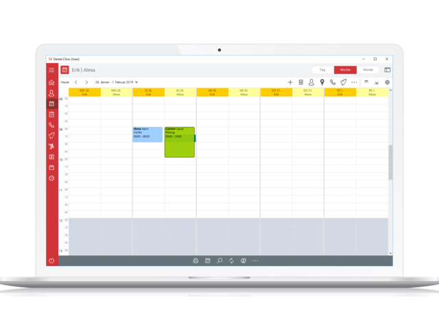 ÜbersichtIn der Tages-, Wochen- und Monatsansicht wird die Auslastung einzelner oder mehrerer Ressourcen angezeigt.Die Arbeitszeiten der Mitarbeiter werden berücksichtigt.Reduzieren Sie nicht wahrgenommene Termine mithilfe automatisierter Erinnerungen.Greifen Sie jederzeit und von jedem Standort aus auf den Terminkalender zu. Er wird automatisch mit Ihrem Smartphone synchronisiert.Planen Sie mithilfe der To-Do-Liste die Aufgaben der Mitarbeiter und setzen Sie verbindliche Fälligkeiten.